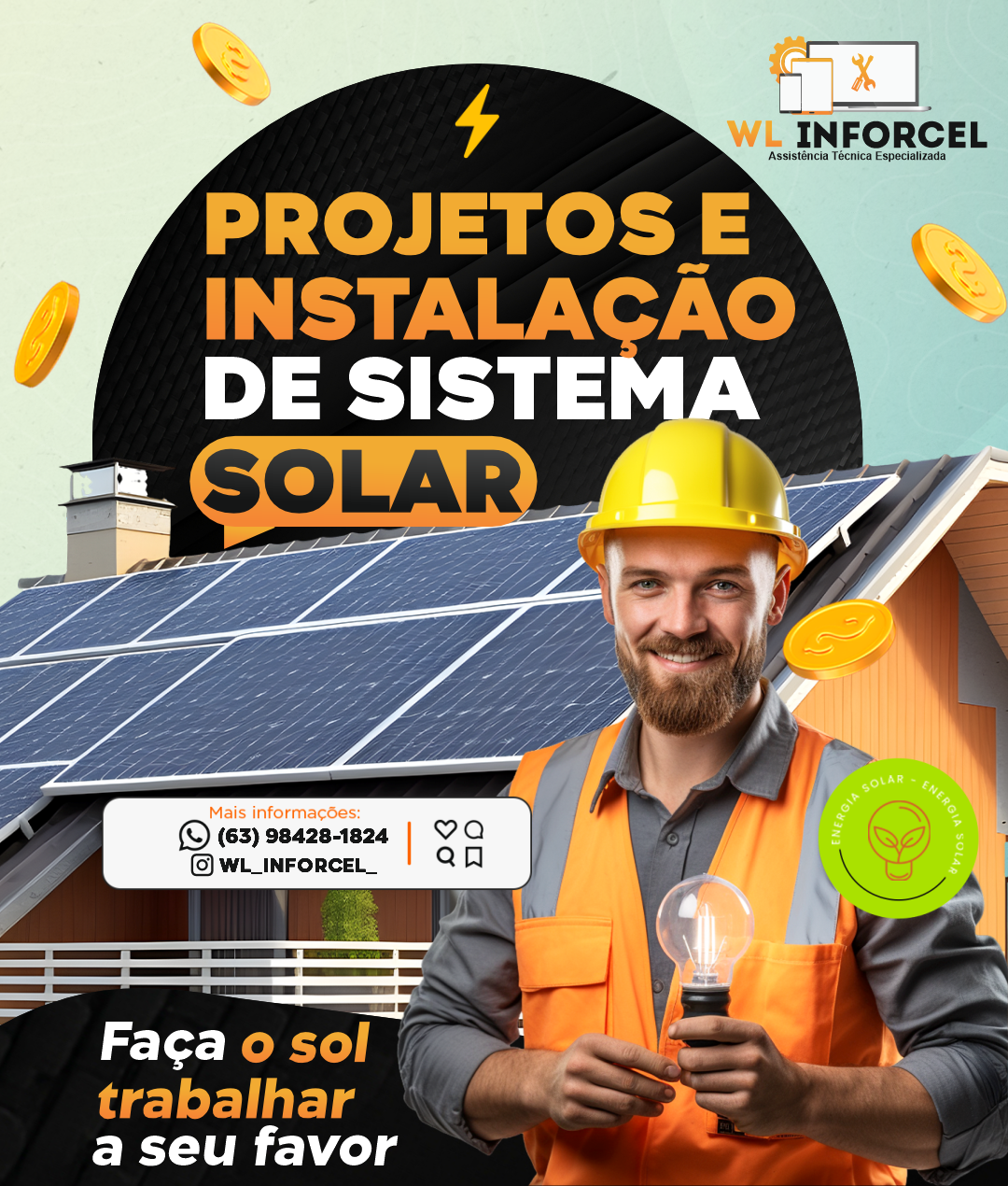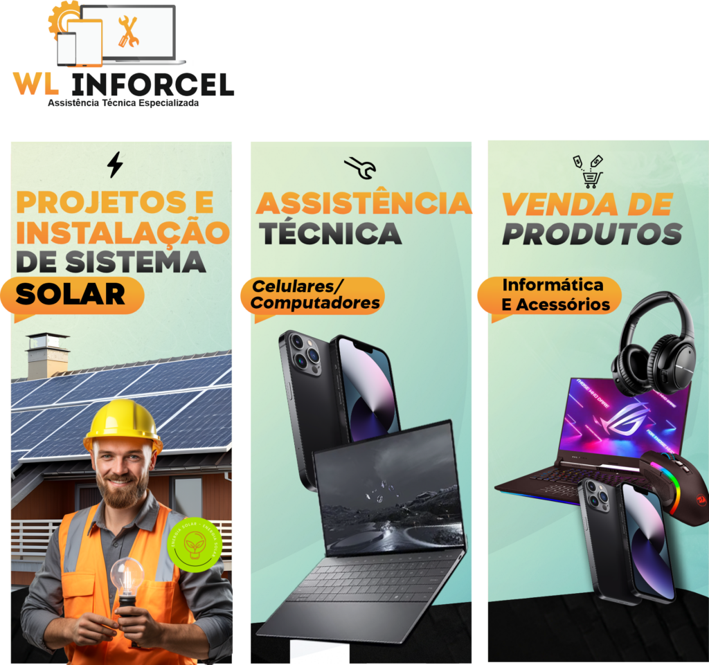 Na WL Inforcel, garantimos as melhores soluções em projetos e instalação de sistemas de energia solar e assistência técnica para celulares e computadores.